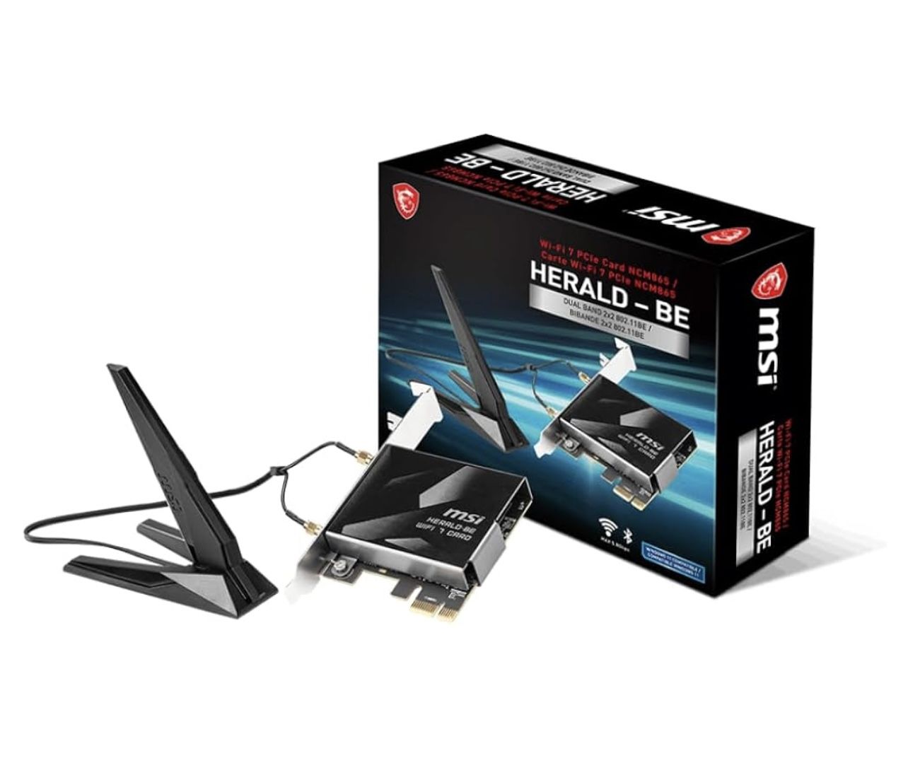 MSI Herald-BE WI-FI 7 MAX (Wi-Fi 7, 802.11BE, Bluetooth 5.4, PCIe, Multi-Link Operation Technology, External Antenna)