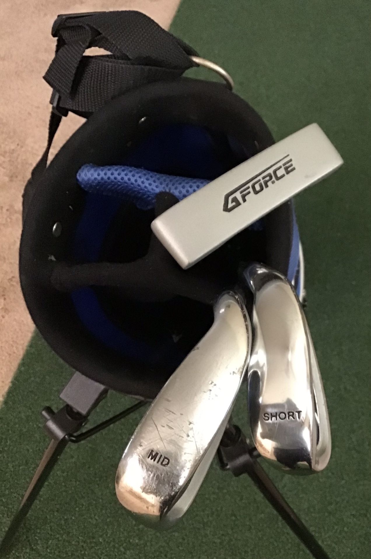 Ram Junior G Force Golf Set 3 Clubs & Bag * Blue Preowned Condition - see pictures for condition and measurements. * light scratches and scuffs on long Iron * Short Iron and Putter in great condition * Grips in good playable condition * Short Iron length ~ 34” * Long Iron ~ 35” * Putter length ~ 33” * Ram No Driver I’m in Phoenix , 7th Street and Dobbins Road area in S.Mountain. $35 Kids golf, Golf set, Junior Set
