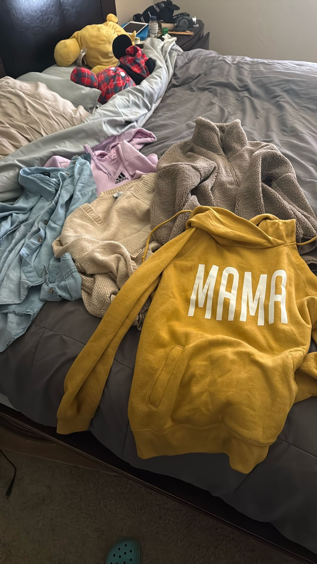 3 hoodies, a sweater and a button up top. All size large.