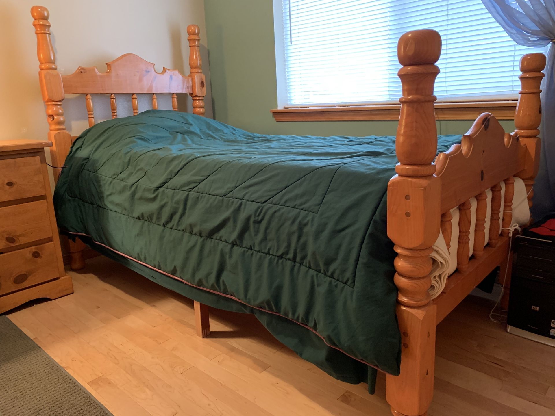 Bedframe - $75 firm -Twin size durable robust bed frame with some minor scratches on headboard and footboard here and there. Made from solid wood.The mattress is also on sale, check my other post. Dimensions: L: 83”, W: 40”, H: 15.5” Dresser - $75 firm -6 drawer dresser with minor dents/scratches made from solid wood. Dimensions: L: 4ft, W: 18”, H: 29.5” $150 firm for both. $30 obo for painting -Serious buyers only -Comes disassembled