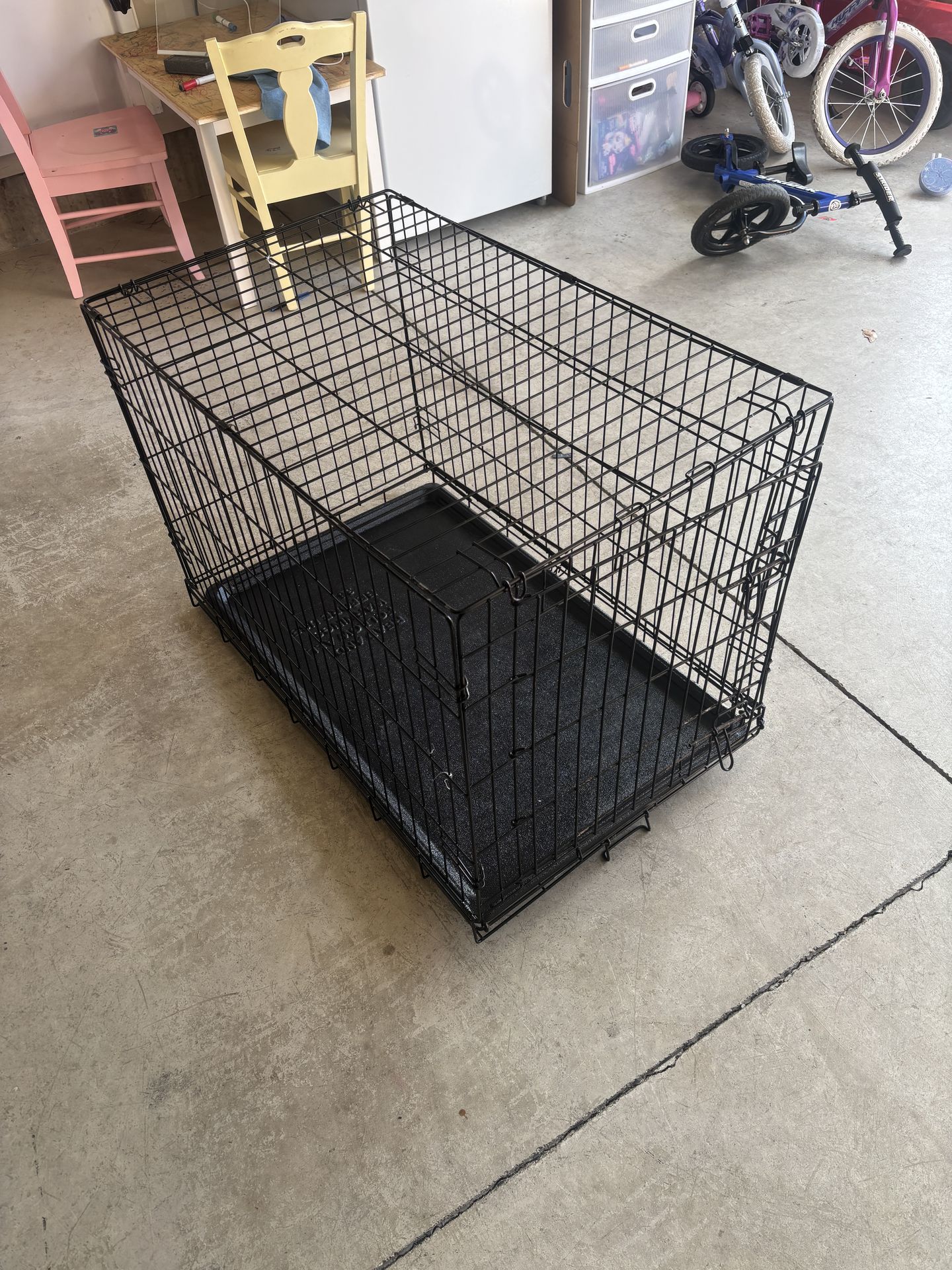 Dog Crate for sale, my puppy is too big for it now. It’s been used before but still gets the job done. 24 inches tall x 22 inches wide x 36 inches long