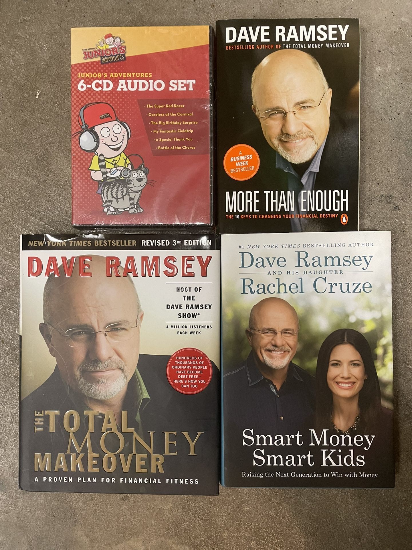 •Dave Ramsey Junior’s Adventures 6 CD set •Dave Ramsey More Than Enough book •Dave Ramsey Total Money Makeover •Dave Ramsey Smart Money Smart Kids Asking $25 for all