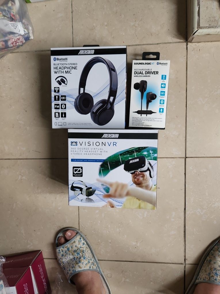 Combo- Amerisound VR & Bluetooth Headphone with mic and SoundlogicXT Dual Driver Wireless Earbuds