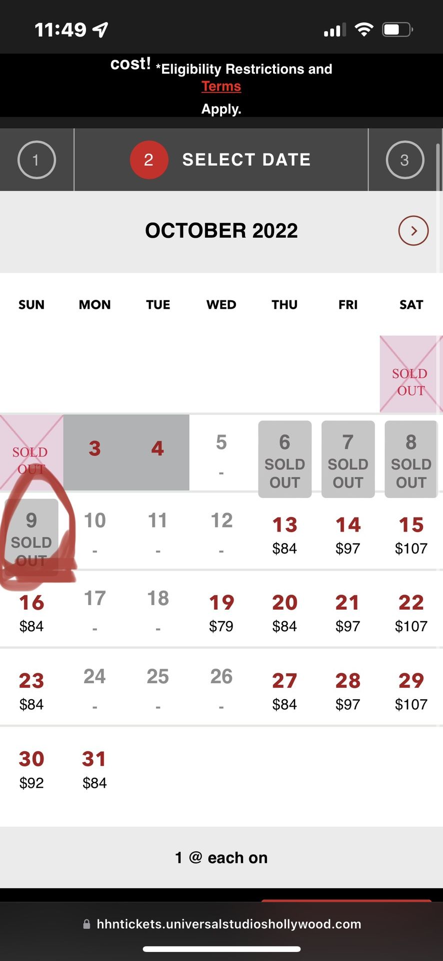 Hello, Need two tickets for Horror Nights Hollywood! Would really appreciate it! October 9th