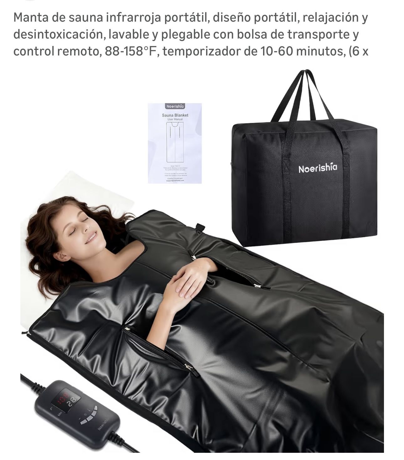 Portable infrared sauna blanket, portable design, relaxation and detoxification, washable and foldable with carrying bag and remote control, 88-158°F, 10-60 minute timer,