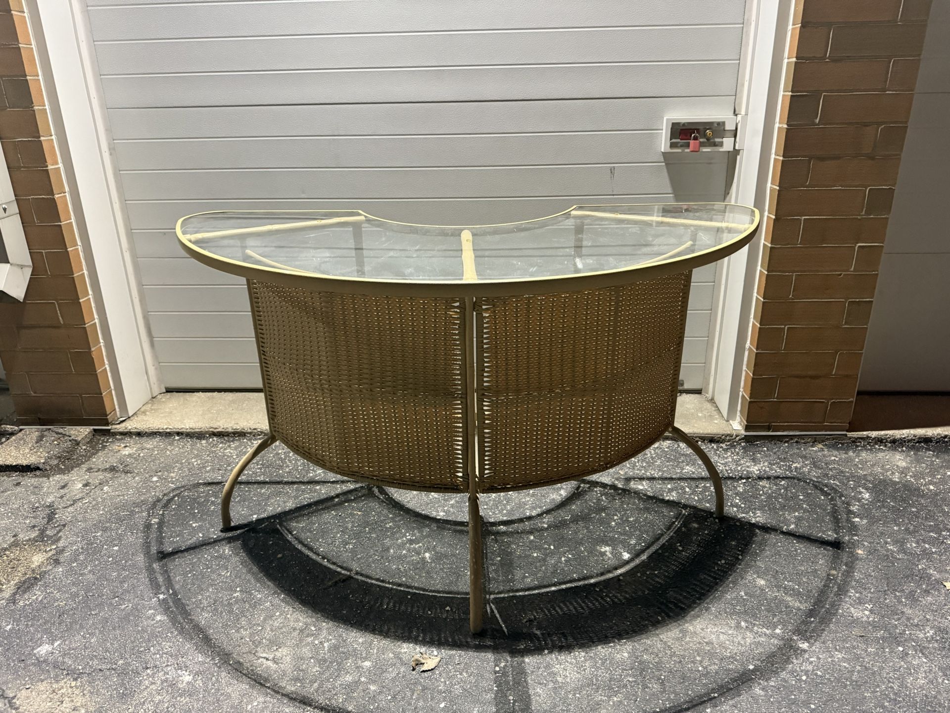 Vintage Half-Moon Rattan & Glass Console Table β Free Curbside Delivery The woven detail gives it that vintage coastal / boho vibe while the glass and metal keep it classy and clean. Super eye-catching piece that will elevate any space. Glass top is solid and sits securely on the frame. Perfect for: Entryway decor, Behind-the-couch table, Bar setup, Plant display, Statement hallway piece Get $50 off if you pick up (Zip Code: 60101). Need help inside? We got you (small fee). π Same-day delivery π‘ From a Smoke-Free Home Payment options: Venmo, CashApp, Apple Pay, Zelle, or Cash.