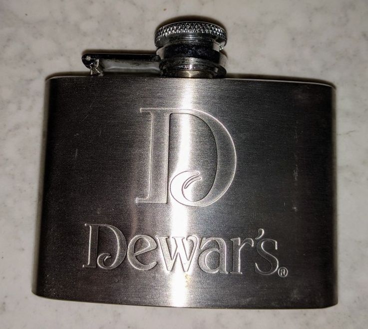 And you condition, a name that can be trusted, Dewar's. A 4 oz flask, durable stainless steel, and easily carried.