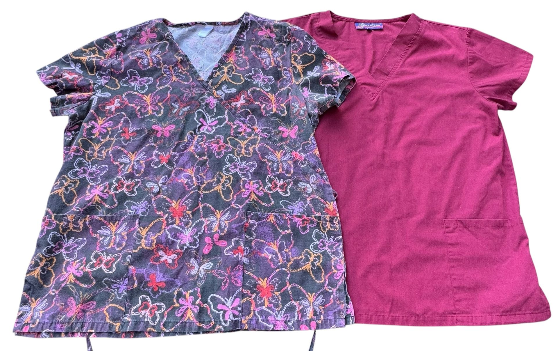 Women’s Nurse Scrub top USED, set of 2, good USED condition. One butterfly pattern and one solid burgundy type color. Questions? Please ask. MAKE AN OFFER!