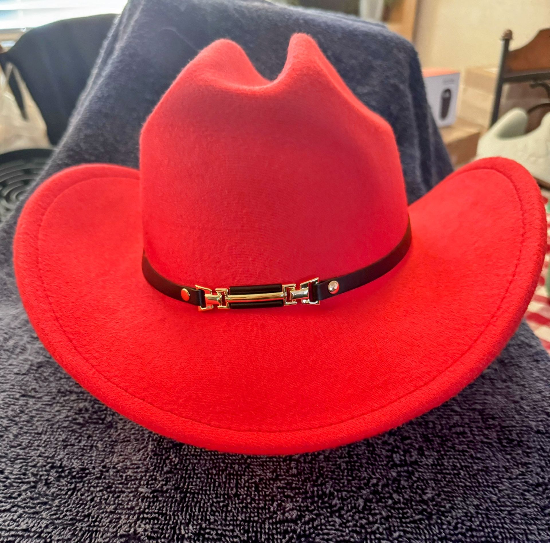 Cowboy Cowgirl Hat Western Wear Lightweight Stylish Western Red Cowboy Hat. With Black Belt, Wide Brim Felt Hat for Men & Women Red Color Non-Elastic Fit for Parties, Rodeos & Casual Outings.