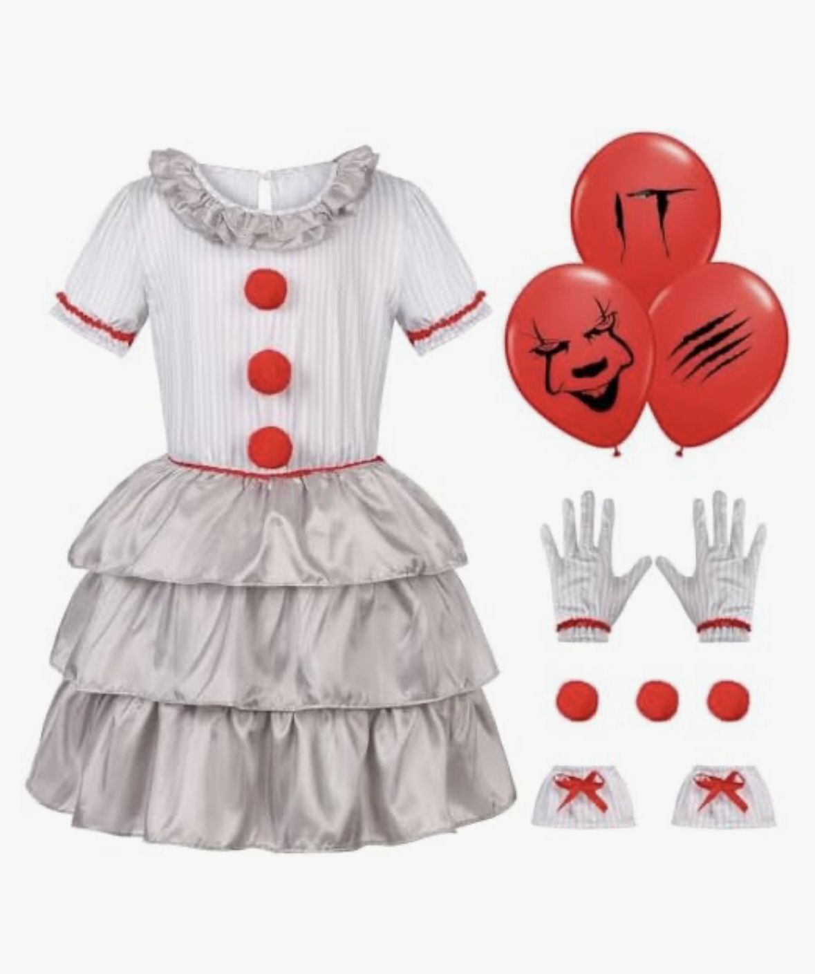 Halloween Clown Costume Dress Girls Kids Scary Movie Cosplay Outfits Small