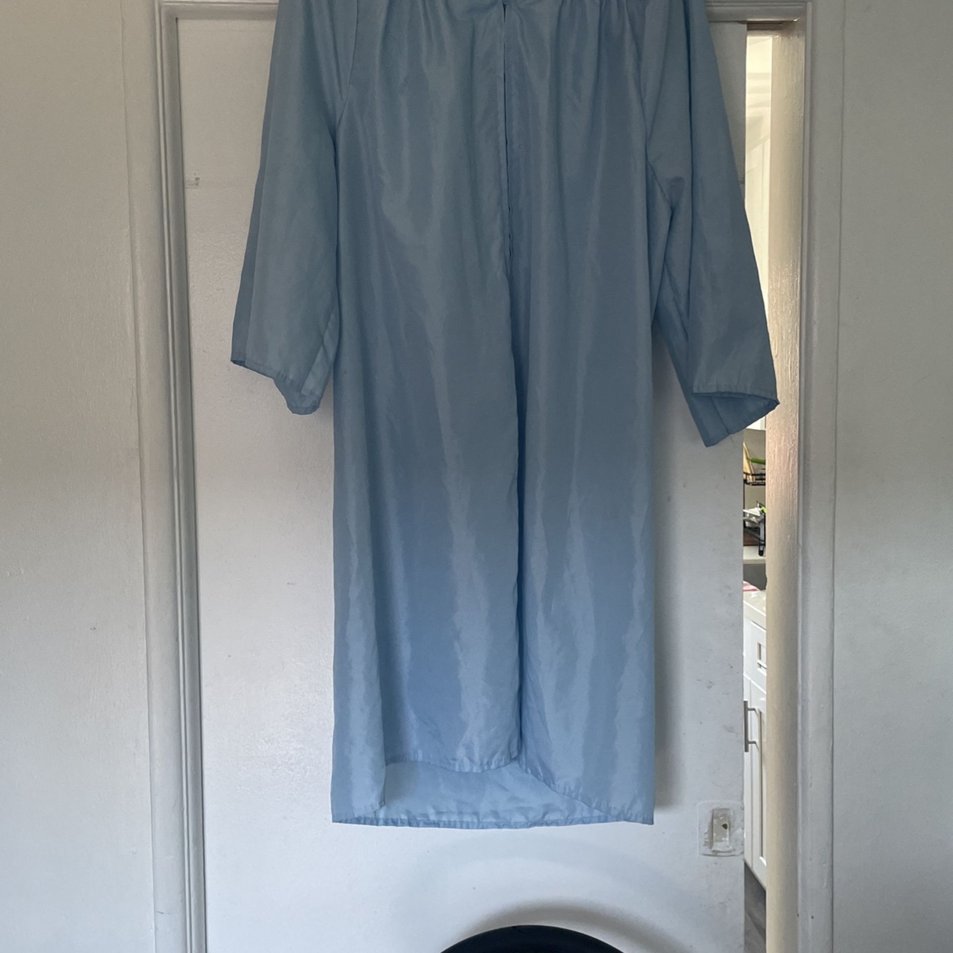 Light blue graduation gown. 5”4-5”6 but I’m 5”2 and it fit fine. Only worn once.