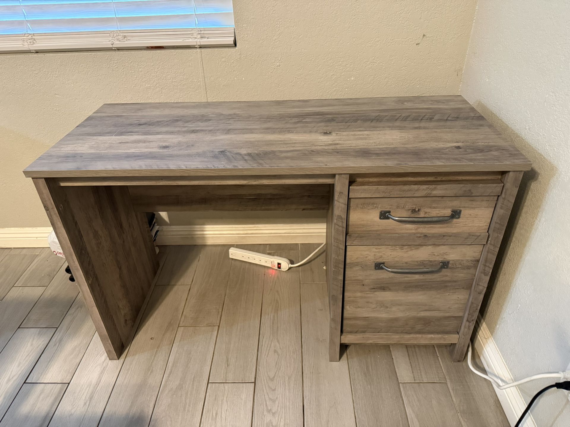 Computer desk that is no longer needed. In good condition, but has small scratch on surface. Pull out drawer in great condition and open storage space is ideal for storing documents etc.