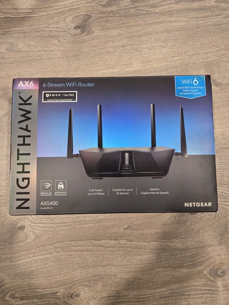 Netgear Nighthawk Router AX5400 Opened Box Never Used Comes with Router, Power Cord and Original Box Amazon Link for more details https://offerup.com/redirect/?o=aHR0cHM6Ly9hLmNvL2QvN3hnenJJNw==