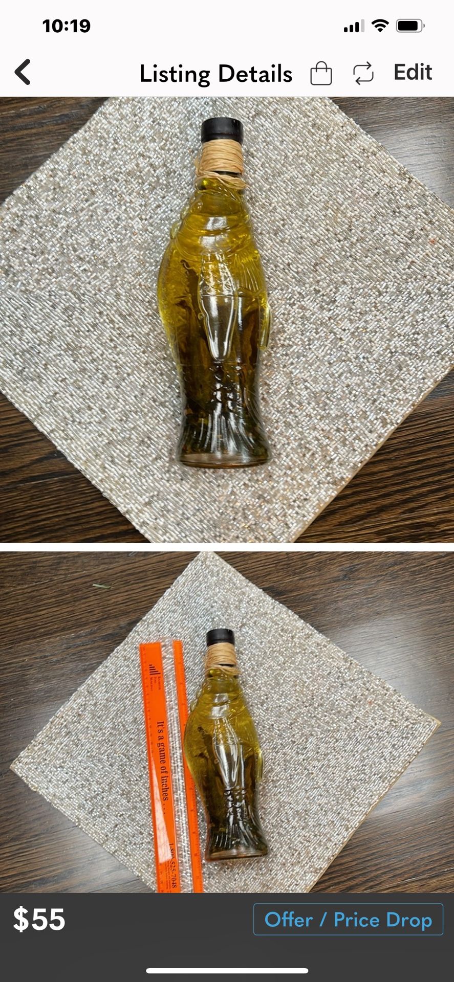 I don't think I'd use the 'infused' oil at this point. This is completely vintage. Unique straw wrapped neck. Can not tell as not opened if it has a screw top or a stopper.