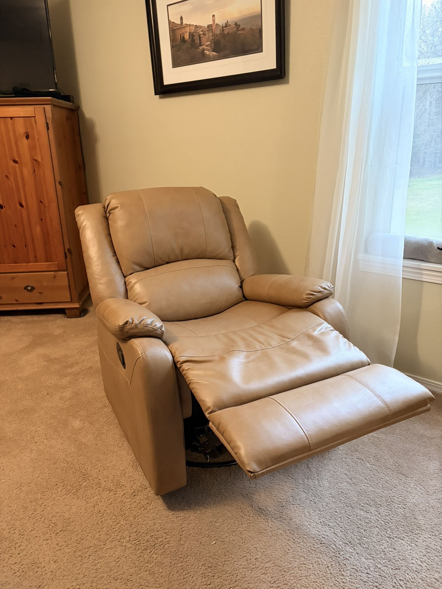 Hardly used RV recliner, excellent condition, perfect for RV, tiny home, or tight spaces.