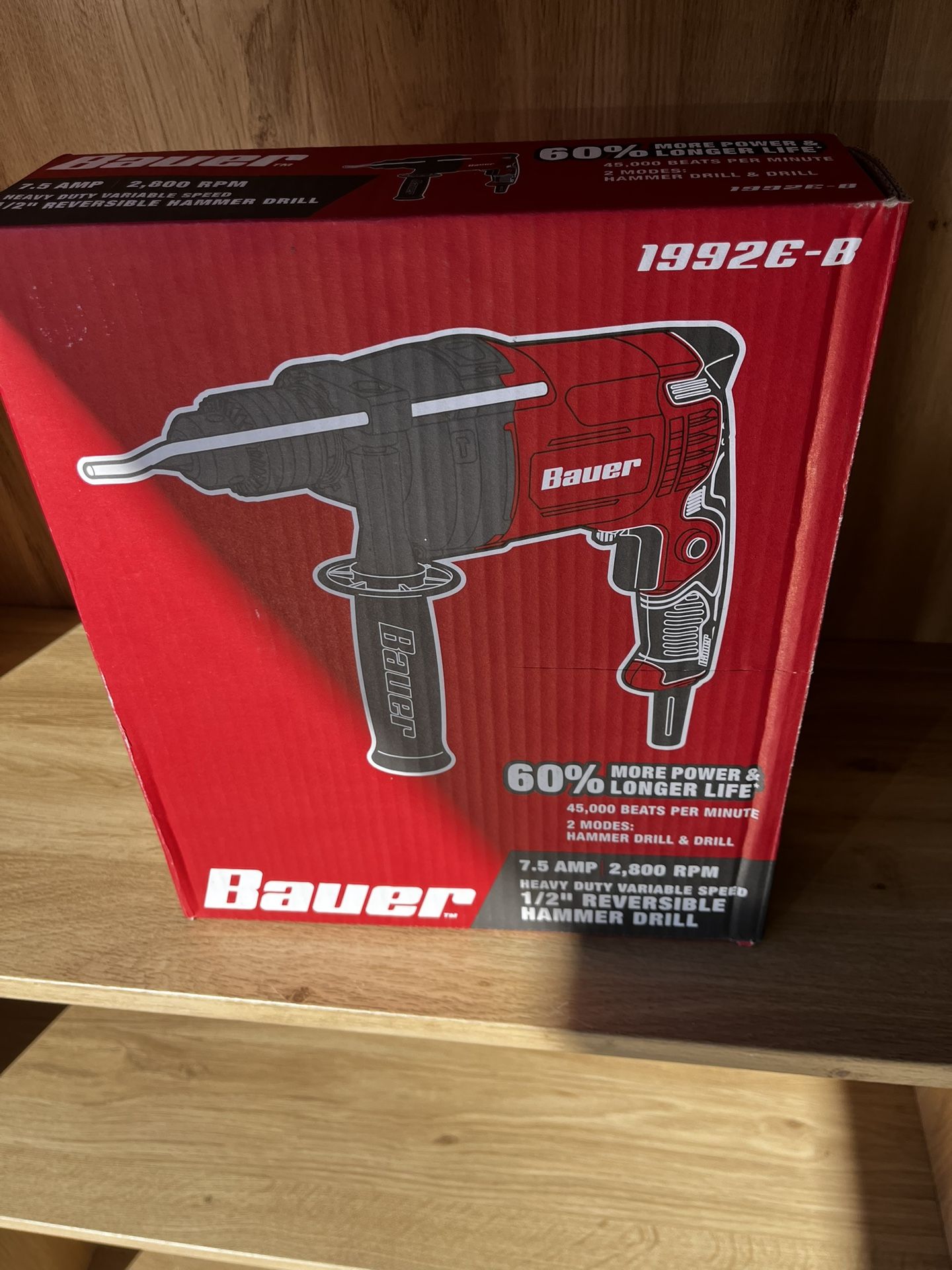 Bauer variable speed 1/2” heavy duty revesable hammer drill brand new in the box Asking only $65 Reduce to $45