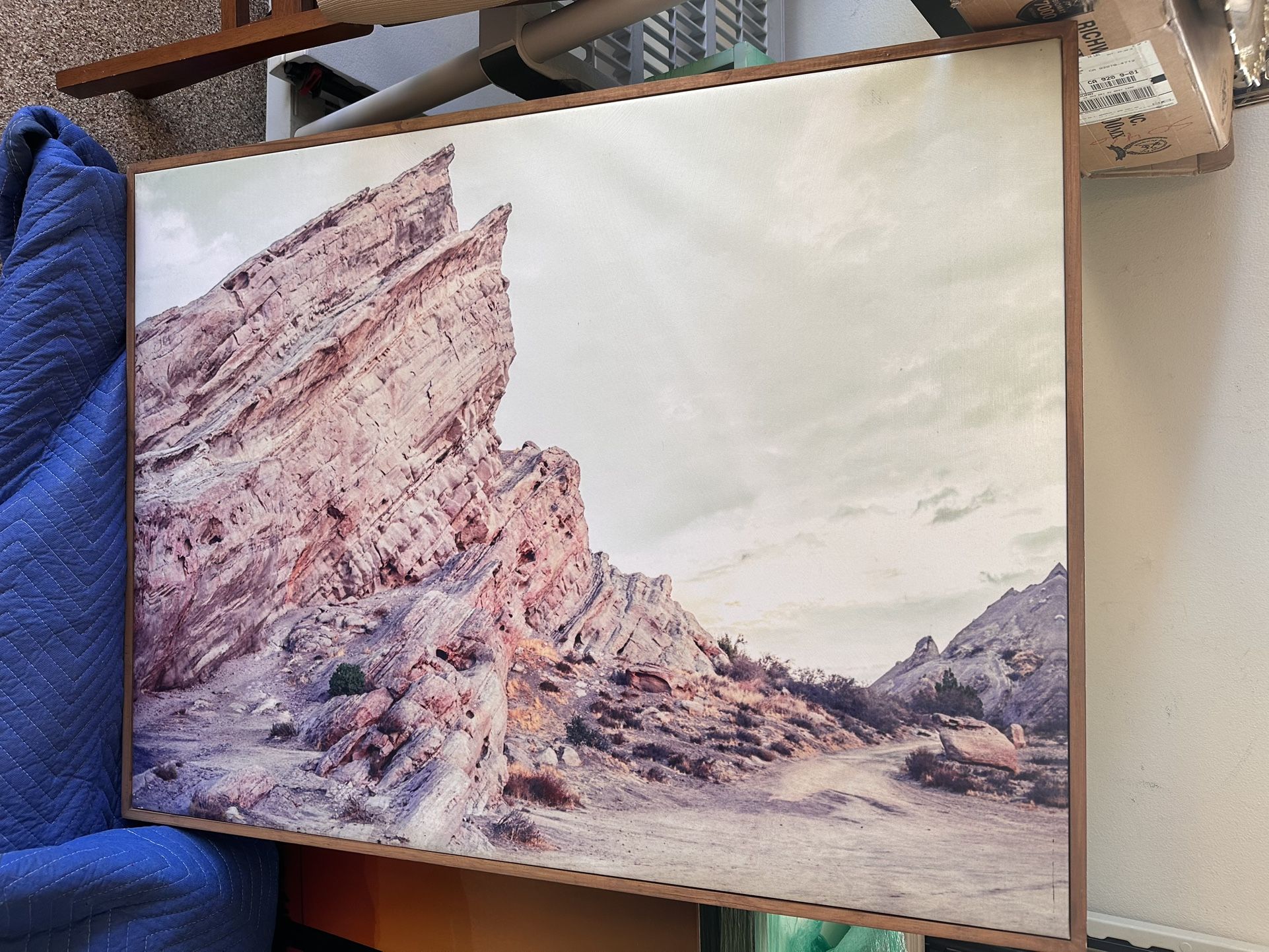 Like brand new, goes for $130 in the World Market store. Very cool picture with wood frame 41” x 31”