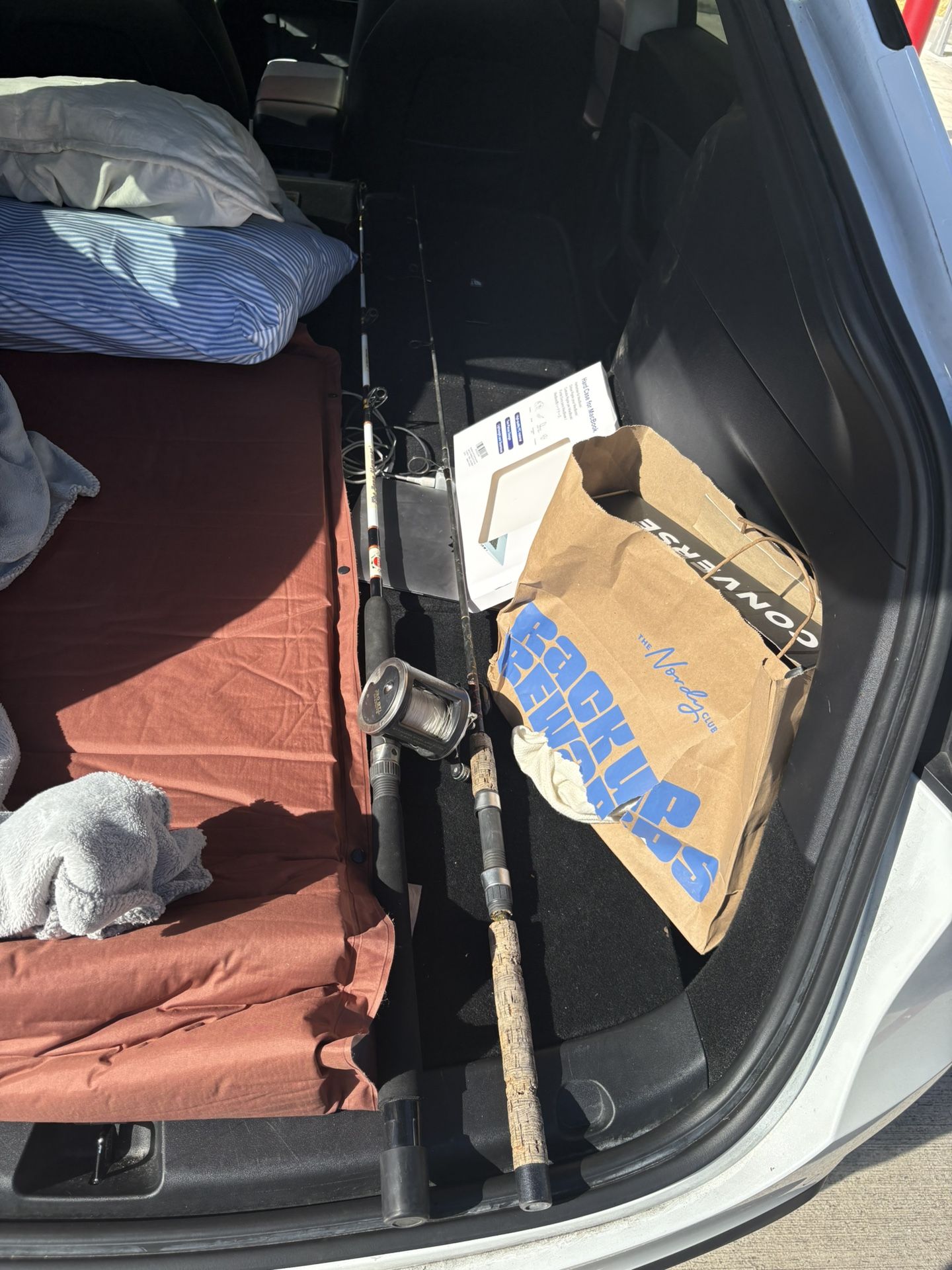 Description: Fishing rod with reel, good for saltwater fishing. Strong build, long rod, ready to use. Great for pier fishing, surf fishing, or boat trips. Condition: Used.