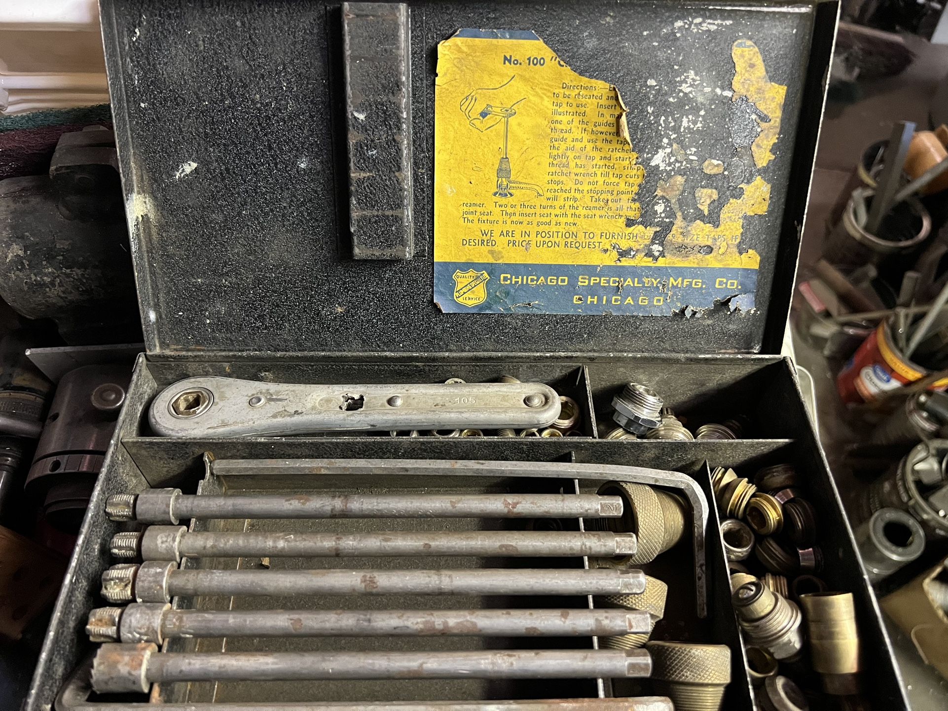 Vintage Chicago Specialty Mfg Co No.100 Faucet Reseating Set Made in USA. Not sure if it's a complete set. Asking $10 obo