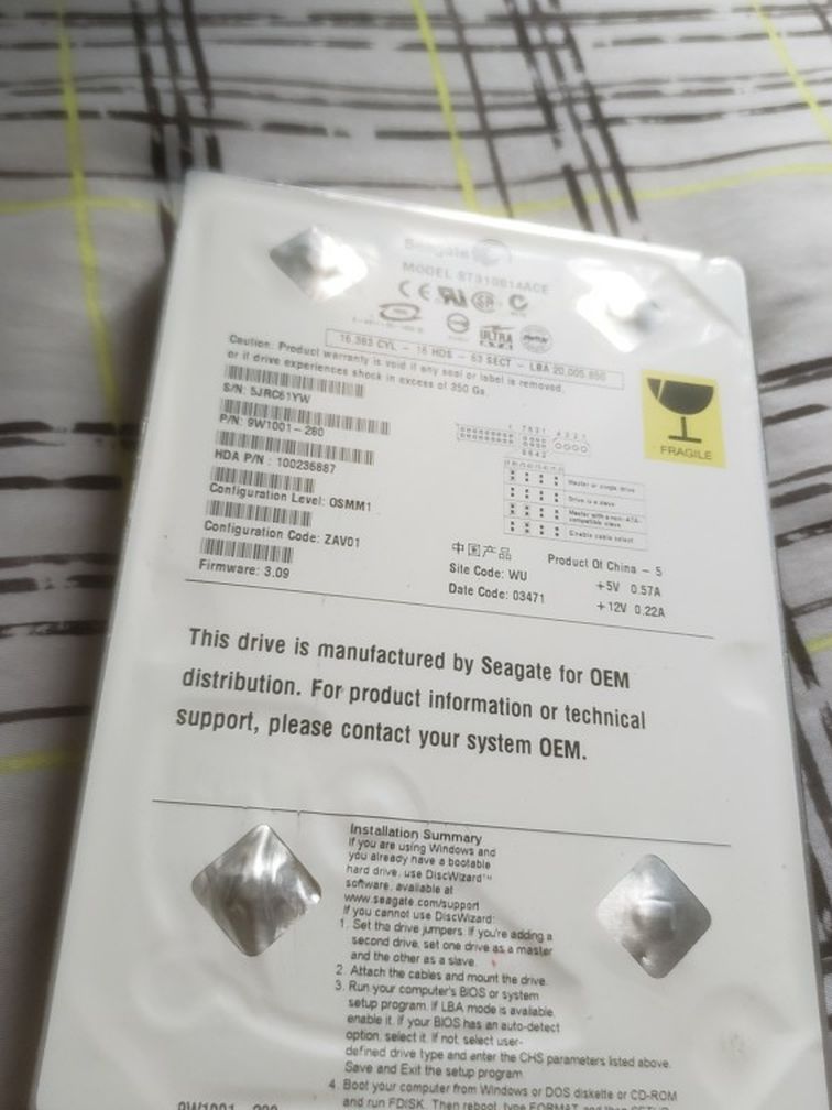OEM Original Microsoft Xbox Seta Hard Drive Seagate 10 GB