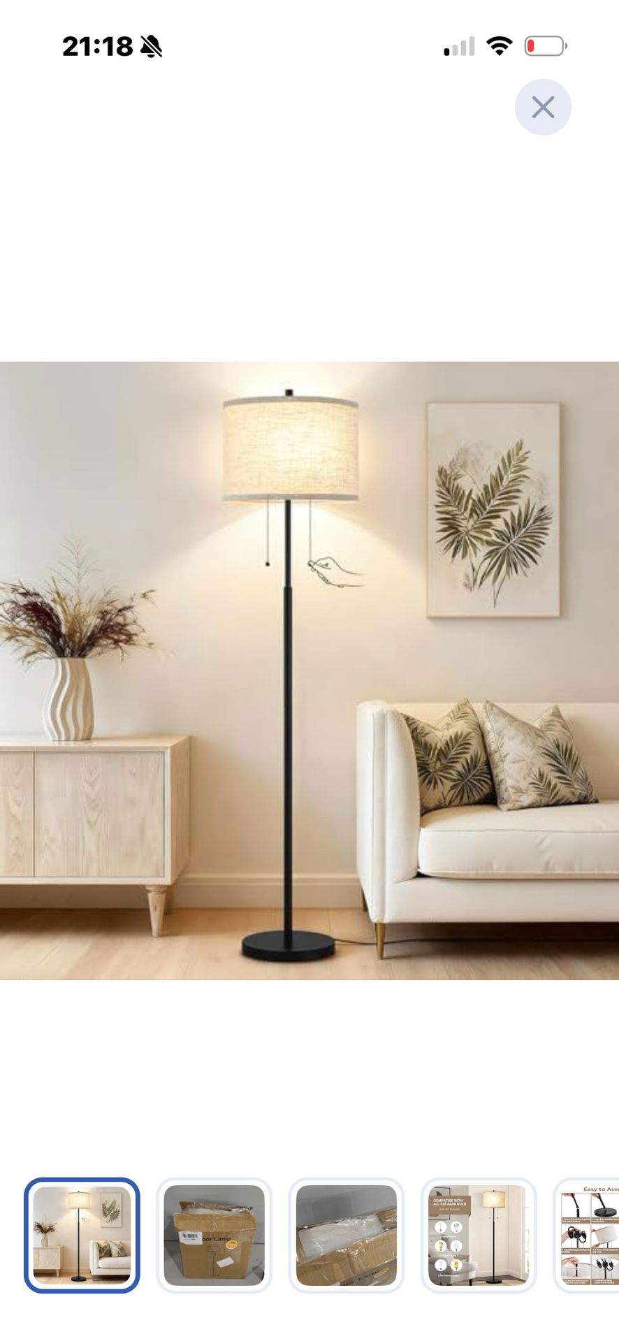 Luvkczc Floor Lamp, 60" Standing Lamp Tall Lamp with Fabric Lampshade&Pull Chain Corner Floor Lamps for Living Room, Bedroom,Office Corner (Black 2 Bu