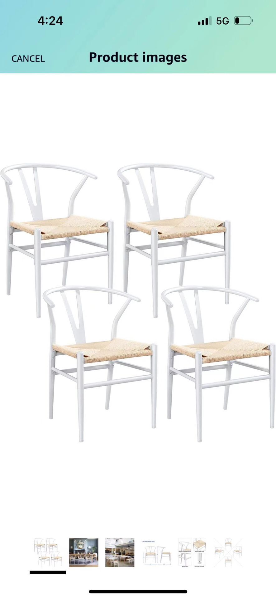 Metal Dining Chair Y-Shaped Set of 4 Weave Arm Chair Mid-Century Dining Room Chairs Backrest Hemp Seat, White