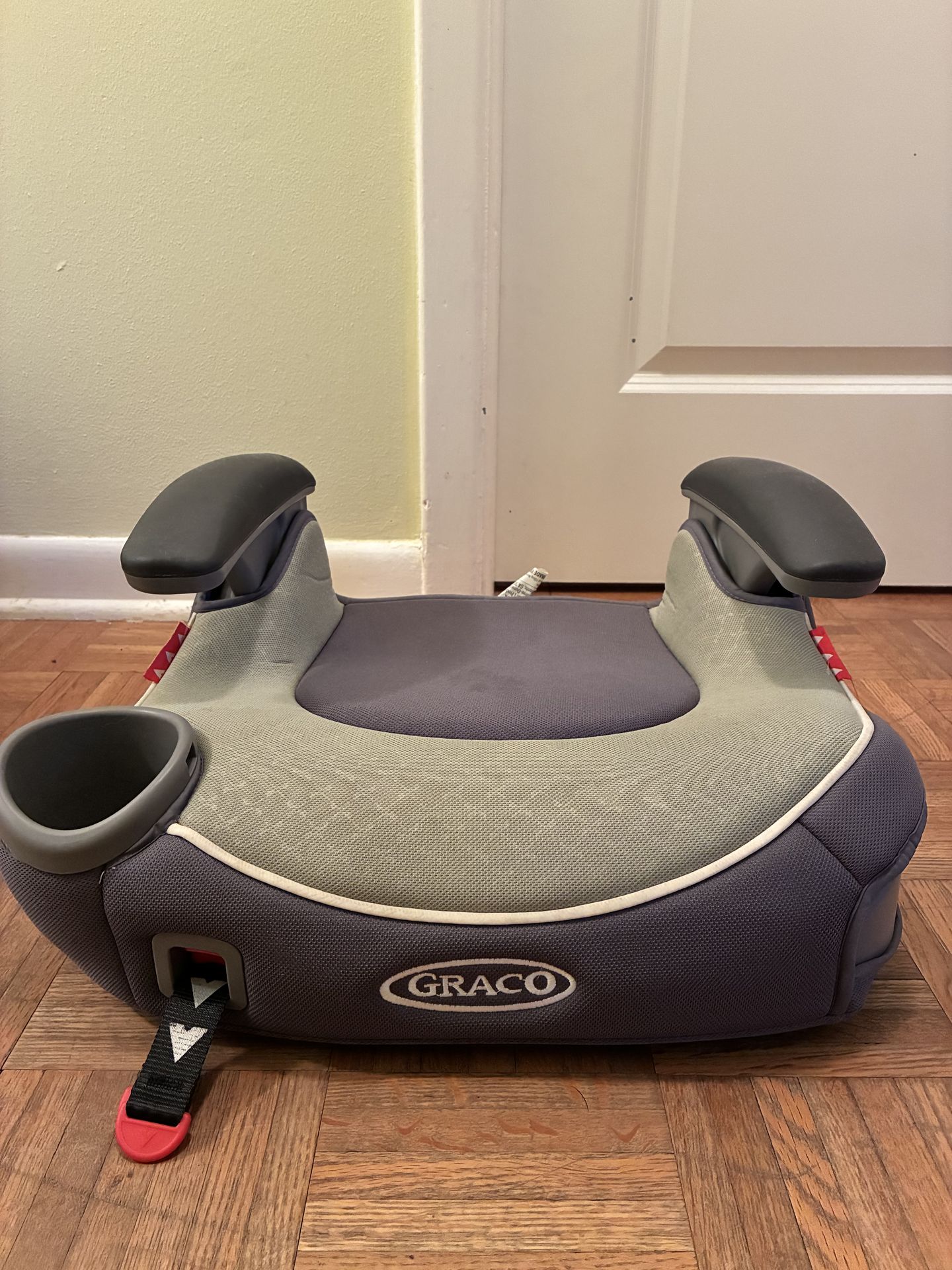 The seat has an integrated cup holder to keep your child's drinks and favorite things within arm's reach. It does have a spot on the cloth (see picture) which can “more than likely” be washed out. Looks more like a water stain. Other than that, it is in great condition and has NOT been in any accidents and barely used. Perfect booster seat for your child transitioning out of the baby/toddler car seats. Porch pick up 👈🏽 in zip code area 33615