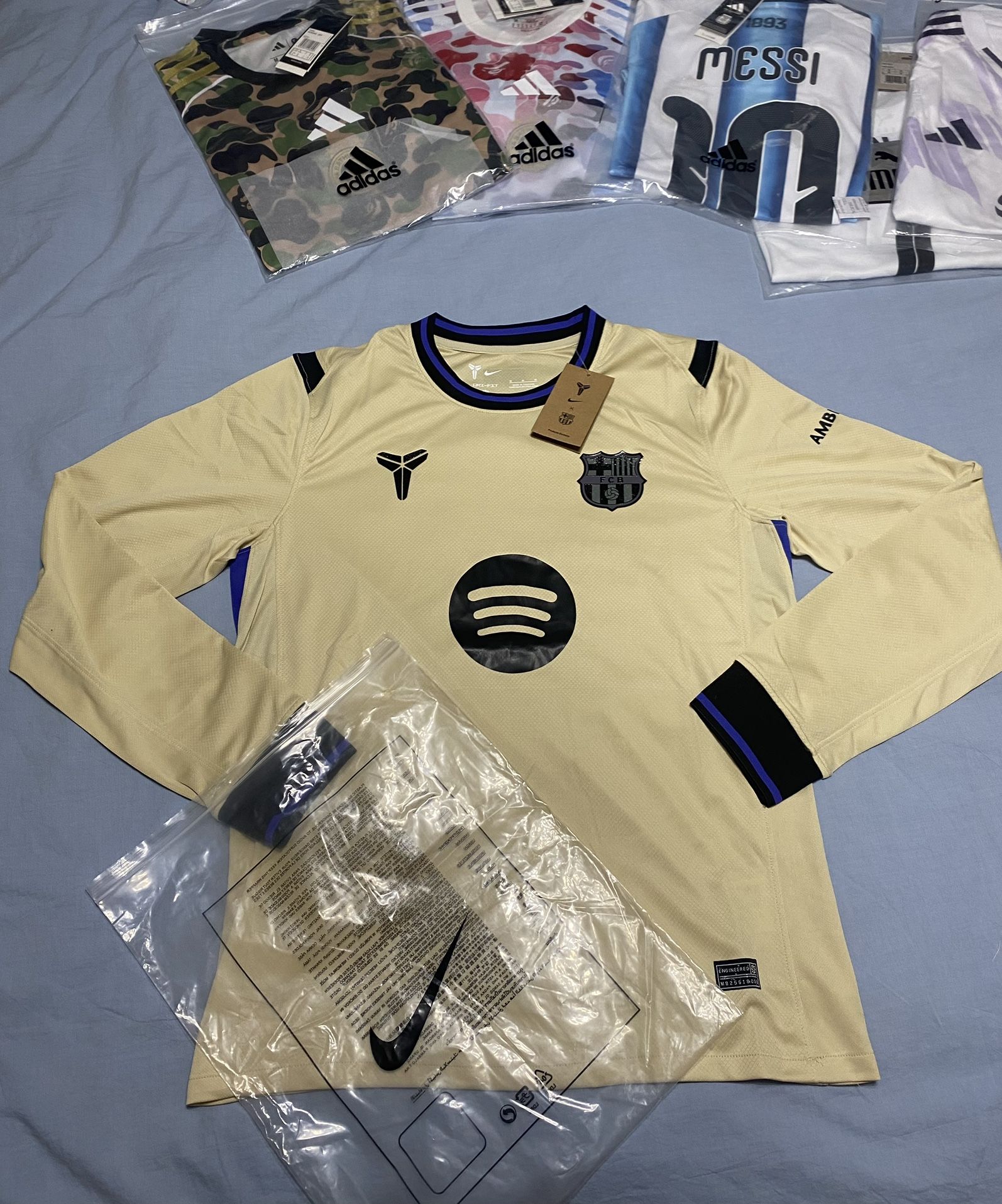 Send offers Brand new with tags and bag Size medium Gold Limited Edition Kobe X FC Barcelona Jersey