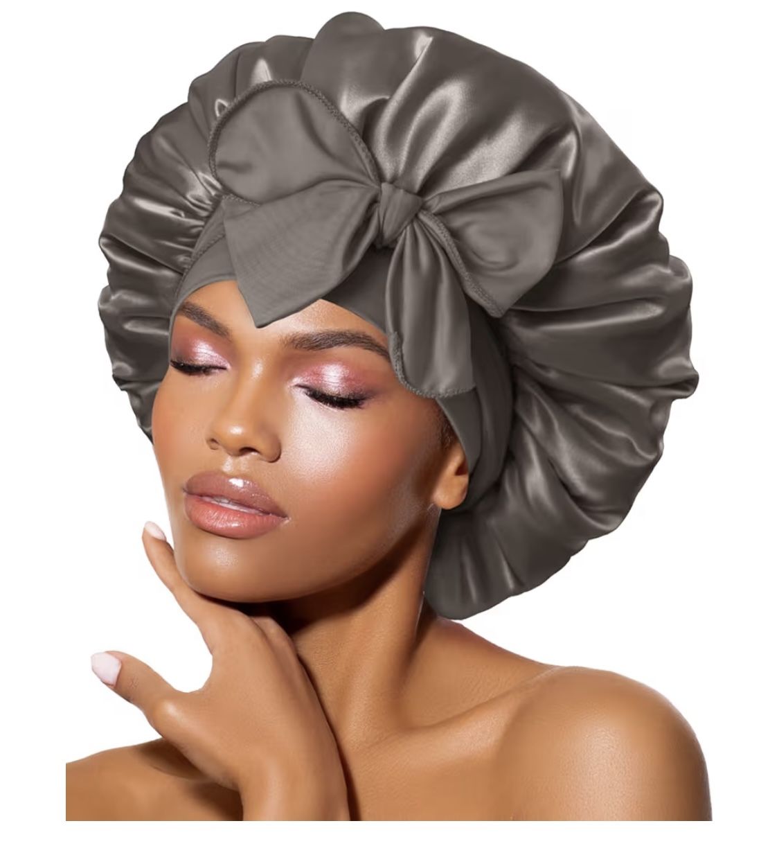 Bonnet Queen Grey Rose Gold Satin Sleeping Bonnet