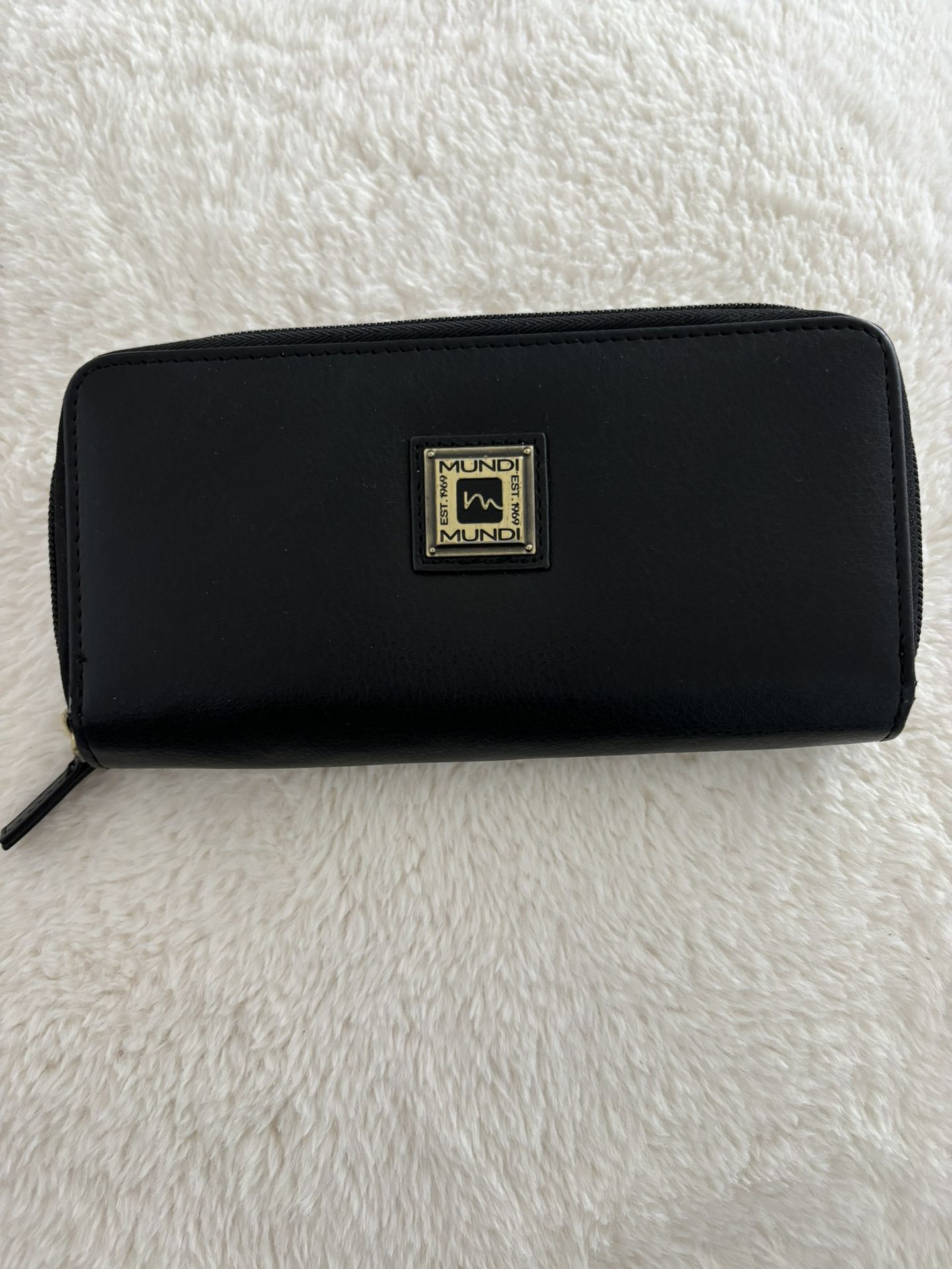 Mundi Wallet With Checkbook Compartment Black Zip Around Measures approximately 7” x