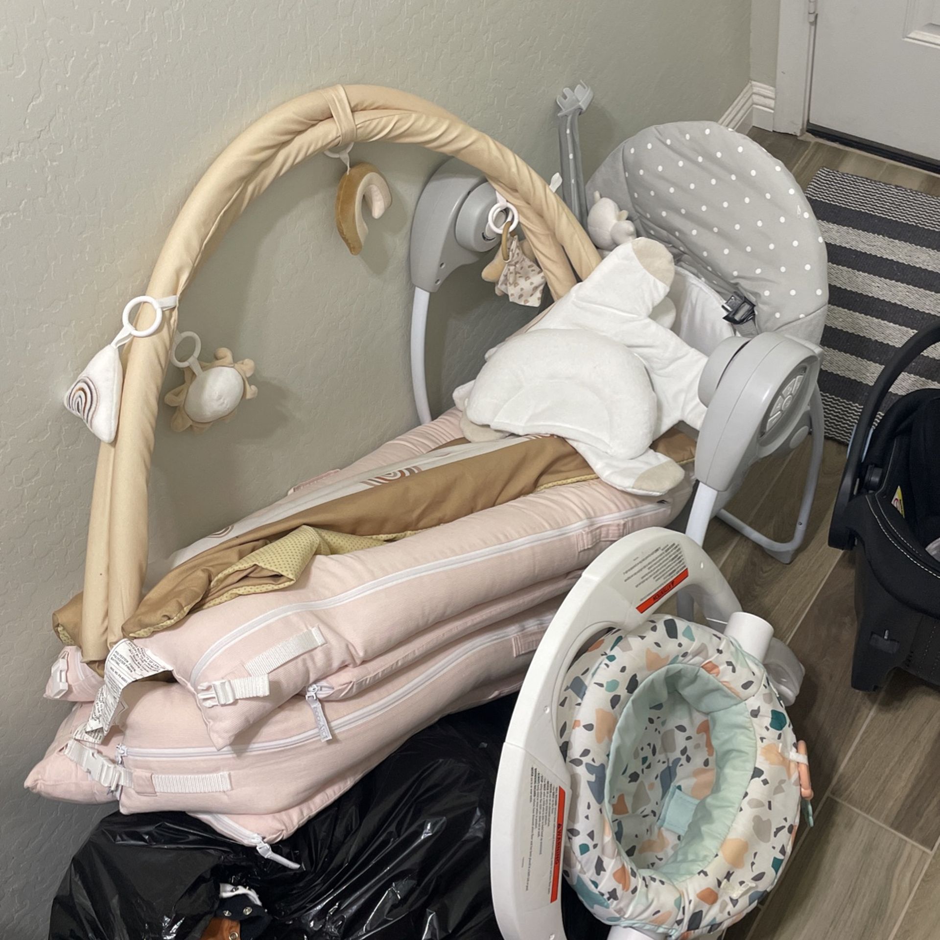 2 Dockatot 70$ each 1 swing 30$ 1 play mat 10$ 1 fisher price sit me up seat 25$