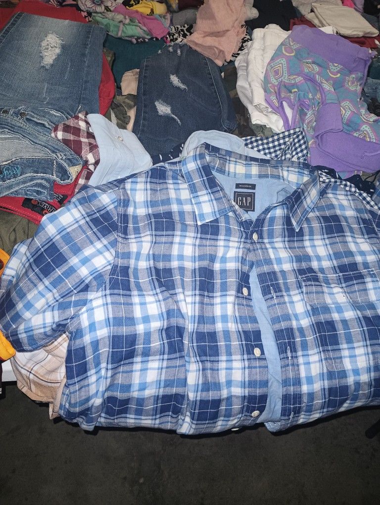 Different prices jeans starting at $2 and up and we have a lot of jeans men's women kids shirts short sets sundresses jumpsuits shorts and more toddler baby clothes all sizes