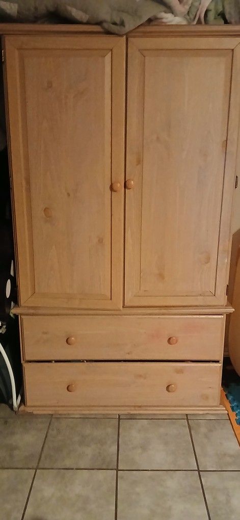 Has 5 compartments/cubbies, 2 dressers that are split into two sides, and a middle compartment that has a area to hang your clothing. We used it for our baby so that why it's blacked out because it is her items in the inside and they are not for sell.we bought it for 300 so we won't go and lower that 130 but are asking for 200