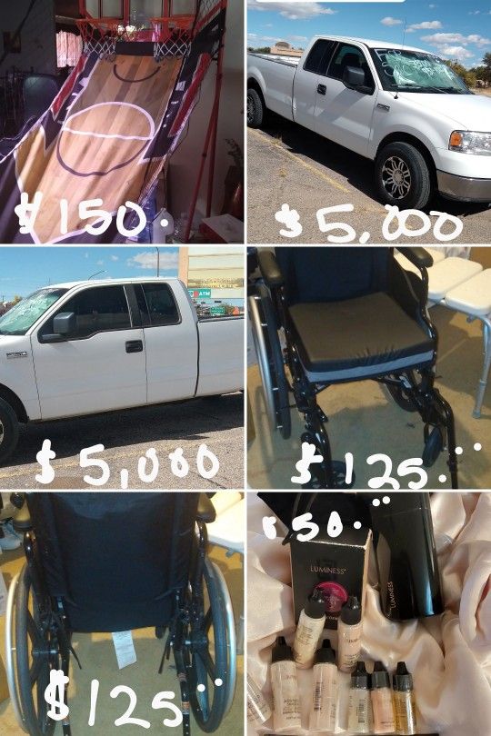 All Gold is overlay bought from Kay's. Chains are 20'in and NEW never used. Womens cocktail ring is New size 7, Men's rings are size 10. Luminess system $50.00 comes with usb charge cord. Basketball hoops has digital counter, keeps score and has 3 games in its memory. No rips, tears 4 balls included. 2004 F150 SUPERCREW CAB XL 8ft bed, New engine has less then 3500 miles, New Transmission, my electricity is going to be shut off tomorrow need $ to raise $423.81