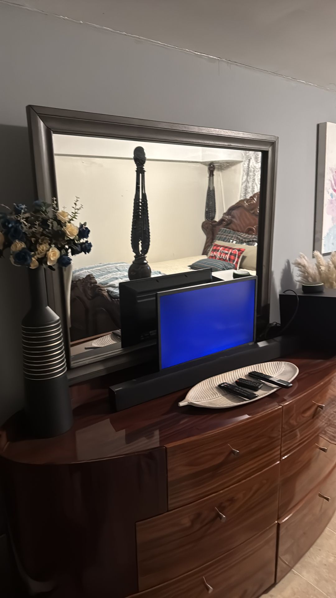 Dresser with mirror attached