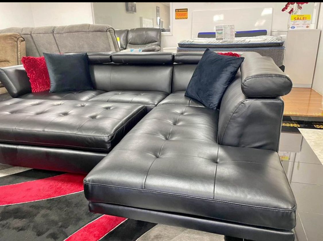 Spring blowout sale. Ibiza black sectional with ottoman only $899. Easy finance option. Same same-day delivery.