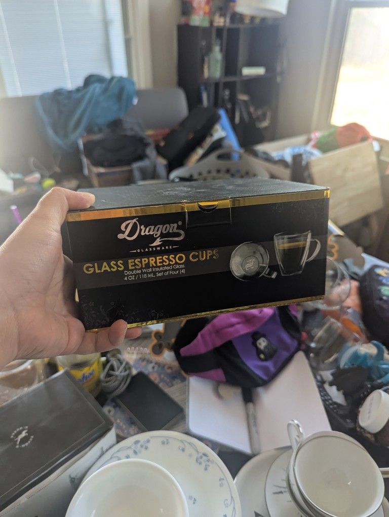Set of 4 new espresso glasses in box. Got as a gift but never used.