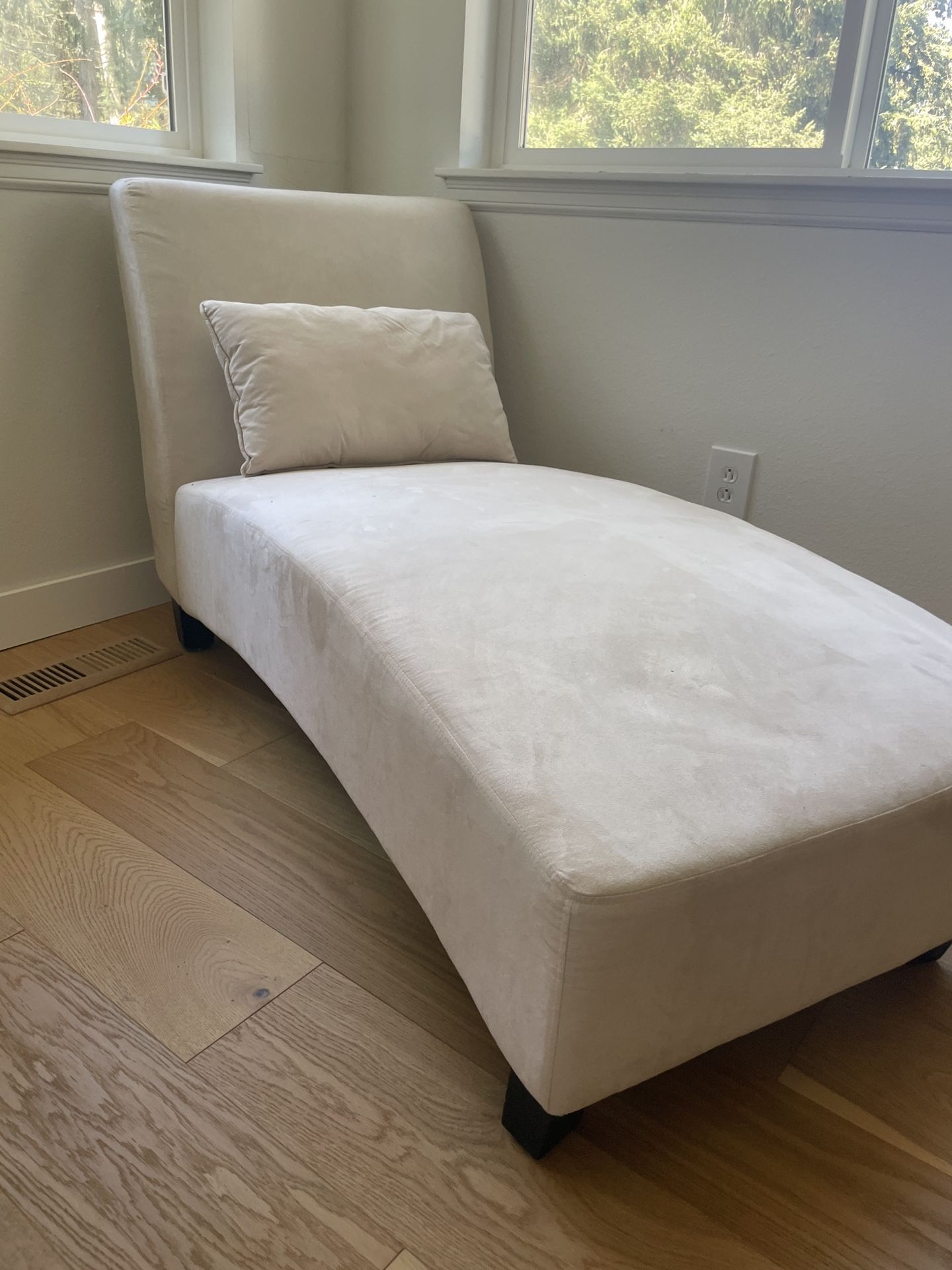 Beautiful tan chaise lounge in excellent condition—barely used. This is a great neutral piece that works with almost any décor style and adds a cozy, stylish touch to any room. Perfect for a living room, bedroom, or reading nook. Comfortable and clean, with no noticeable wear. Only selling because we don’t use it as much as we thought we would. 55” long 26” wide 40” tall Pickup in Gig Harbor.