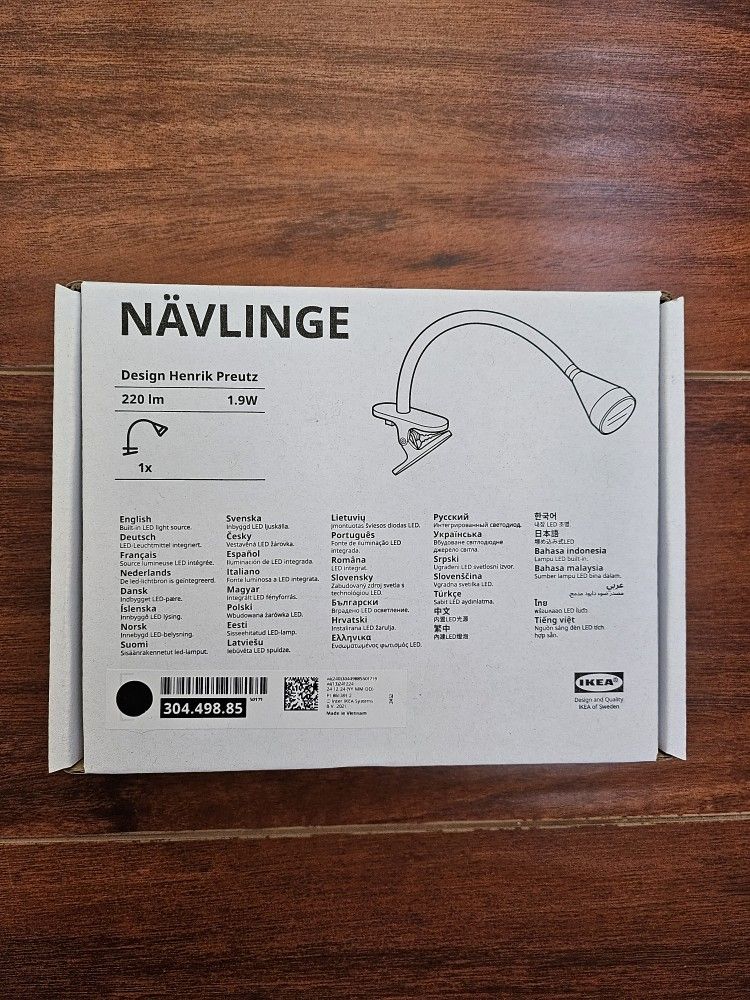 IKEA NAVLINGE clamp light. Brand new, never used. Box has never been opened. Great for desk, bedside, shelf, or workspace lighting. Easy clamp-on design. Pickup only. Payment: cash or Zelle.