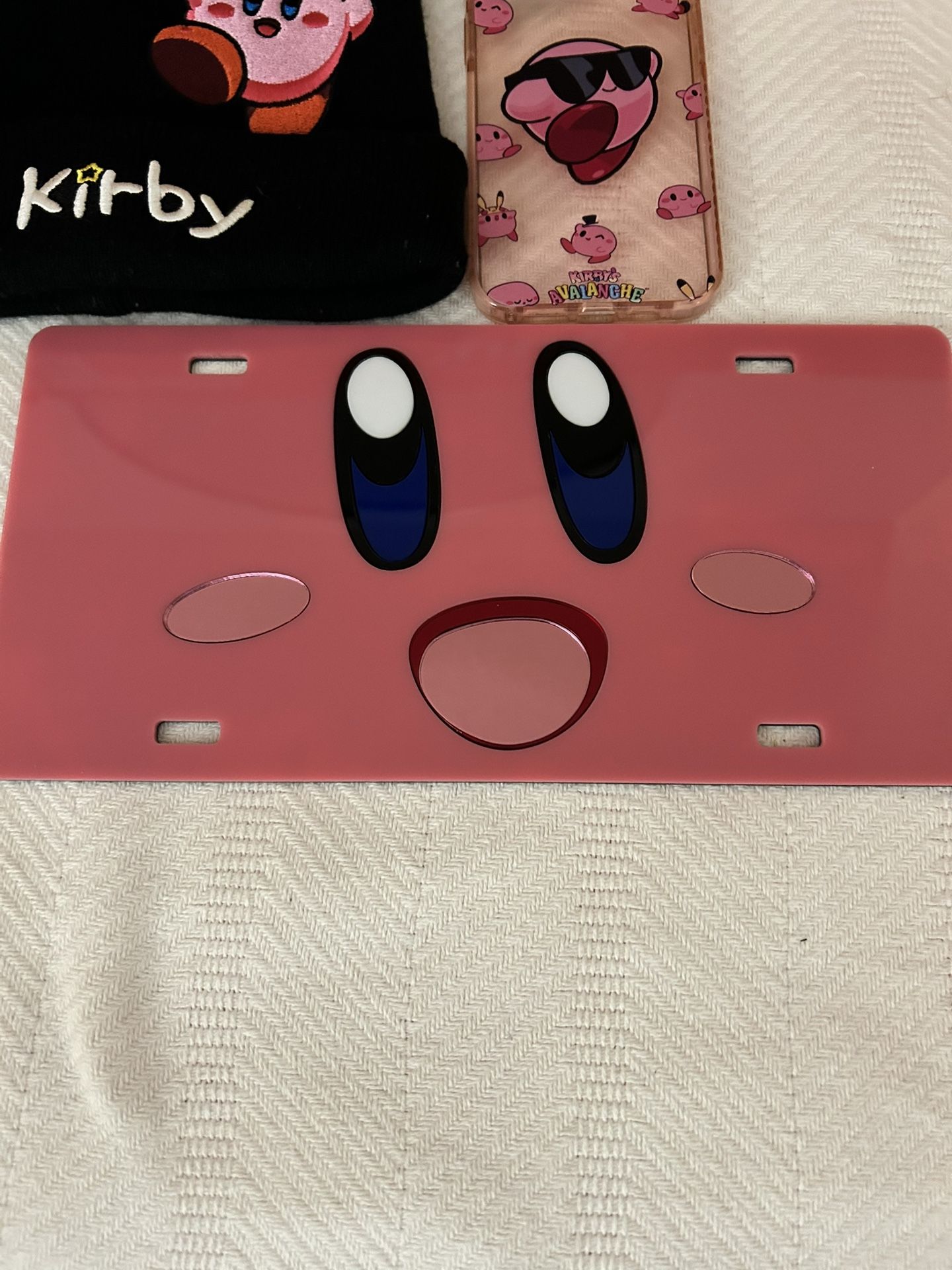 Kirby items all for $20 Firm Hat License plate iPhone 14 Plus/ 15 case