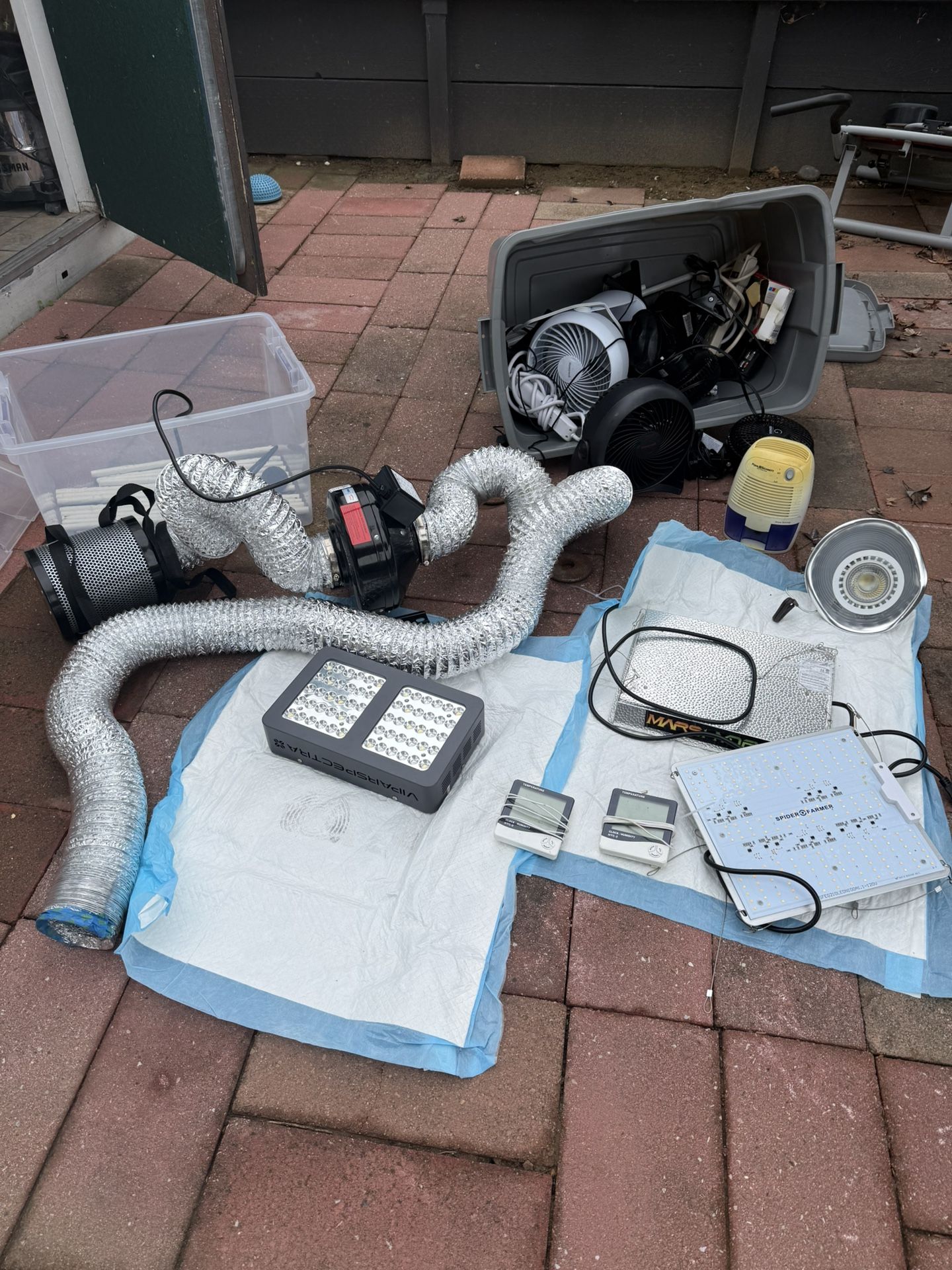 Selling a full indoor gardening setup, perfect for anyone starting or expanding a home grow space for plants, herbs, vegetables, or hydroponic projects. Everything works well and is ready to plug and play. Included in the bundle: • Spider Farmer LED full-spectrum board light with dimmable driver • Mars Hydro LED light • ViparSpectra LED light • 4” inline exhaust fan • Flexible ducting (multiple lengths) • Carbon filter • Several clip-on circulation fans • Honeywell floor fan • Small humidifier/dehumidifier unit • Power strips, cords, and accessories This set provides strong lighting, airflow, and filtration—great for keeping indoor plants healthy and thriving. Condition: Used but fully functional