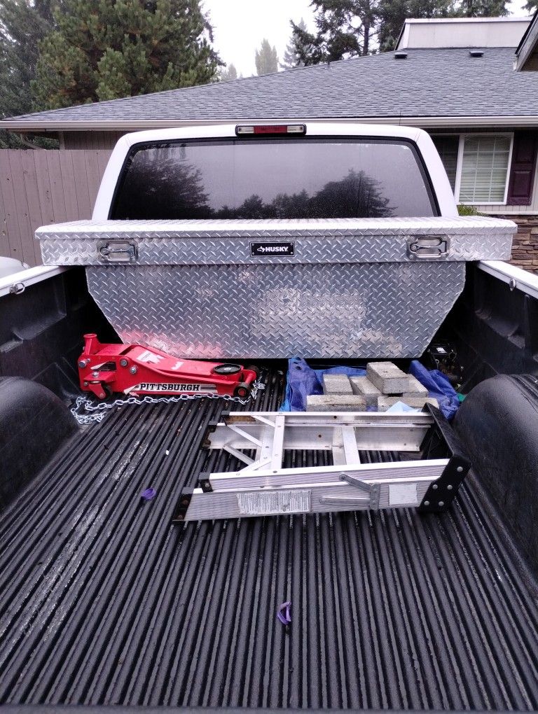 All aluminum, no dents and big and deep. For full size truck. Only problem - no key, but it still opens and closes fine. I think you can get a cylinder set off of Amazon. $125 obo
