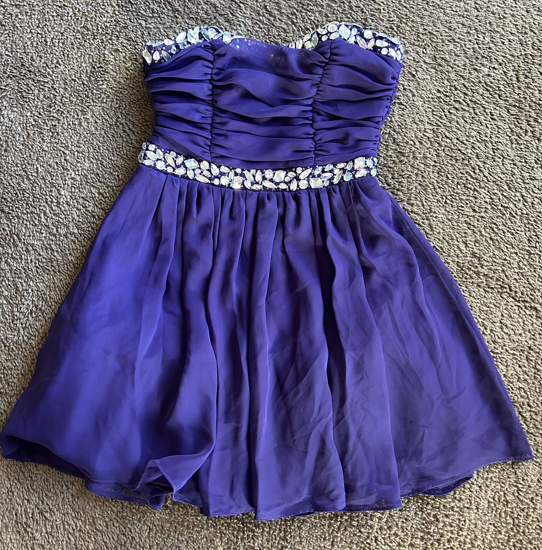 Color is dark purple, not as bright as picture. Size tag missing, would say small-medium.