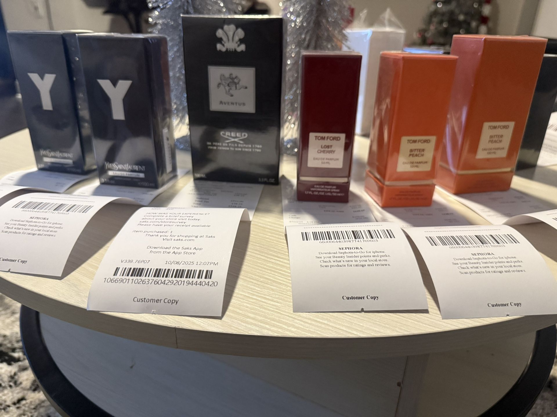 YSL EDP Intense - 3.3fl - $100 YSL EDP - 3.3fl - $100 Creed Aventus - 3.3fl - $100 Tom Ford - Lost Cherry - 1.7fl - $100 Tom Ford - Bitter Peach - 1.7fl - $100 Tom Ford - Bitter Peach - 3.7fl - $100