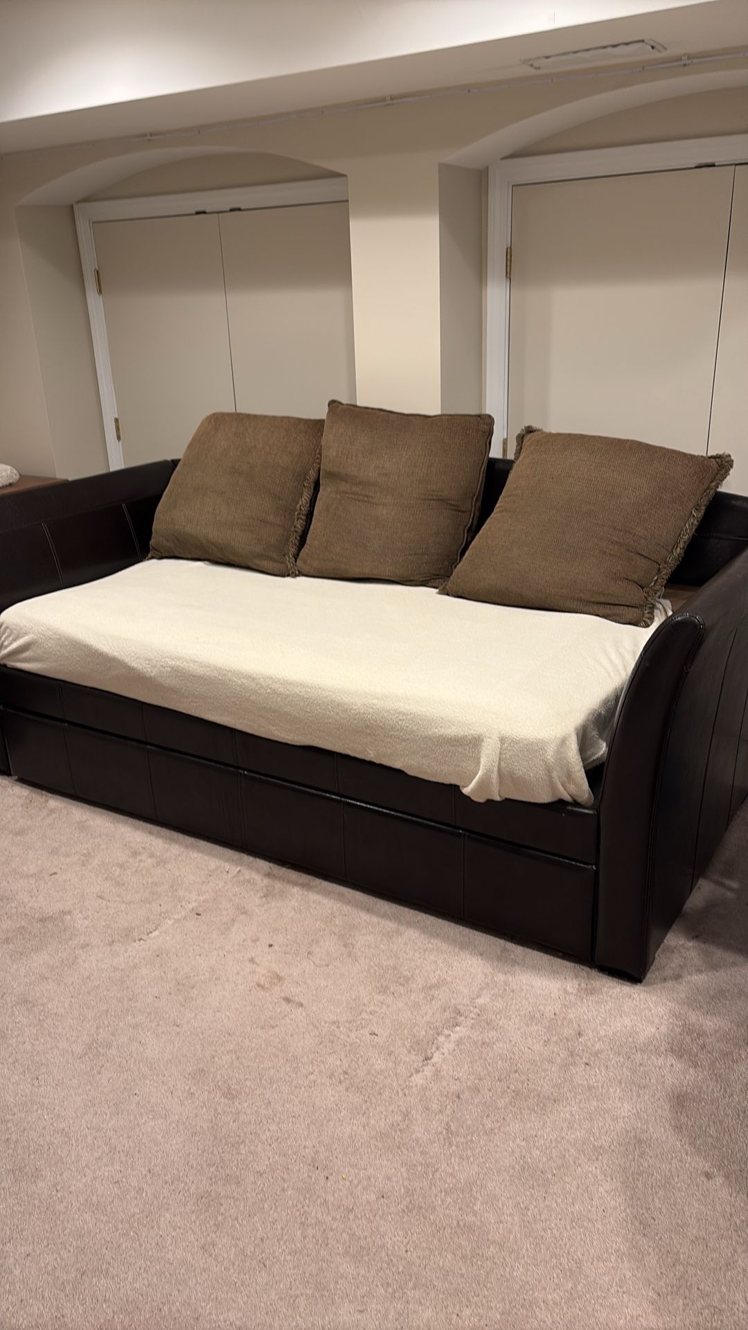 Daybed with two like new twin mattresses (always in a protective mattress cover). You will need a small truck or SUV to pick it up.