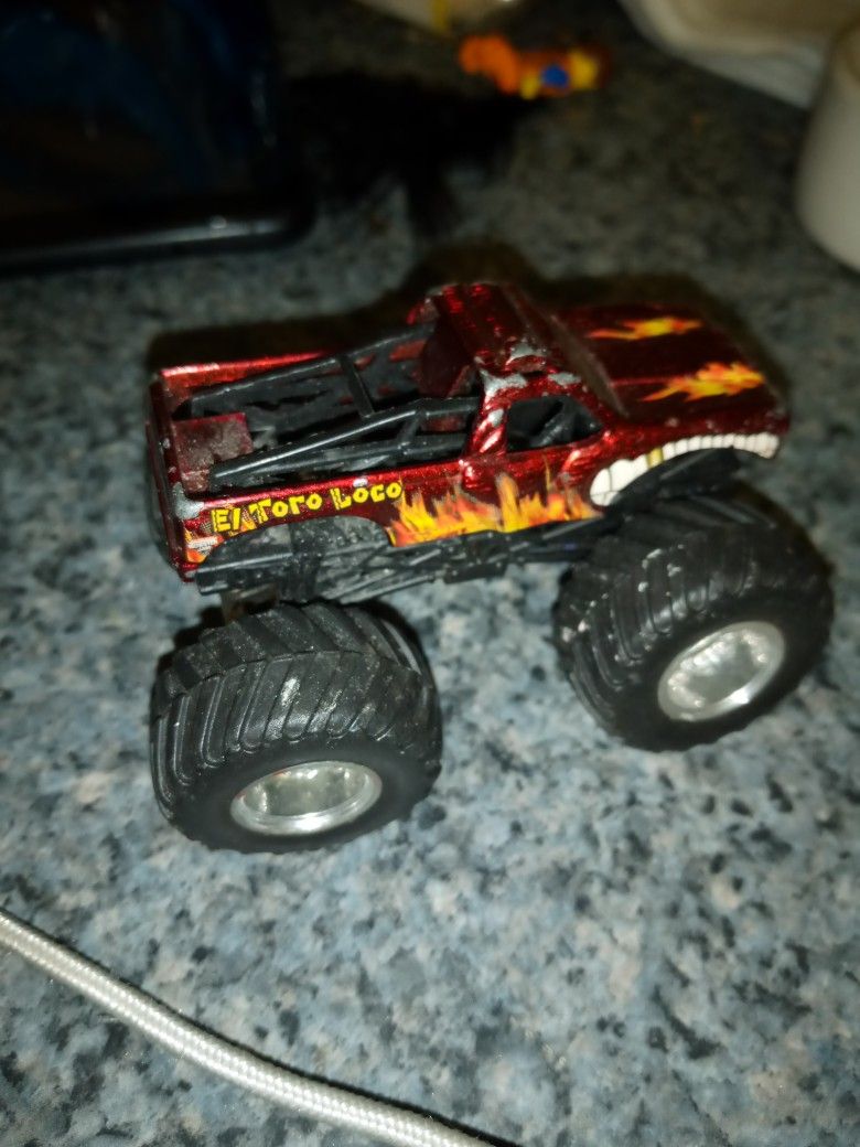 Slightly used monster truck. El Toro Loco. Maroon perfect condition. Couple paint chips
