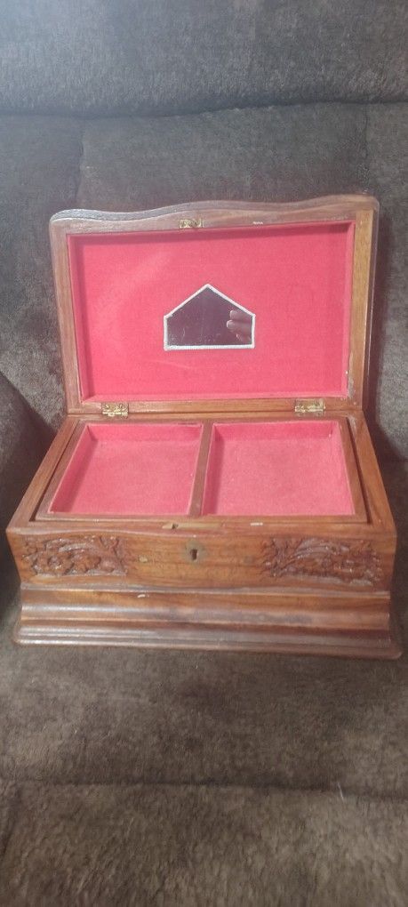 Like new never used 10 car vintage jewelry box with mirror has a bottom piece to it too inside no key tho but great gift for someone for the holiday to put jewelry in🙂