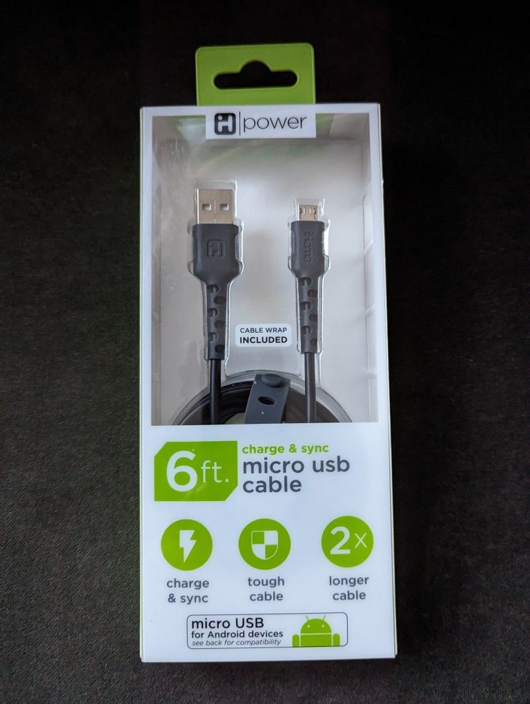 6ft Micro USB Cable With Cable Wrap for Android Devices