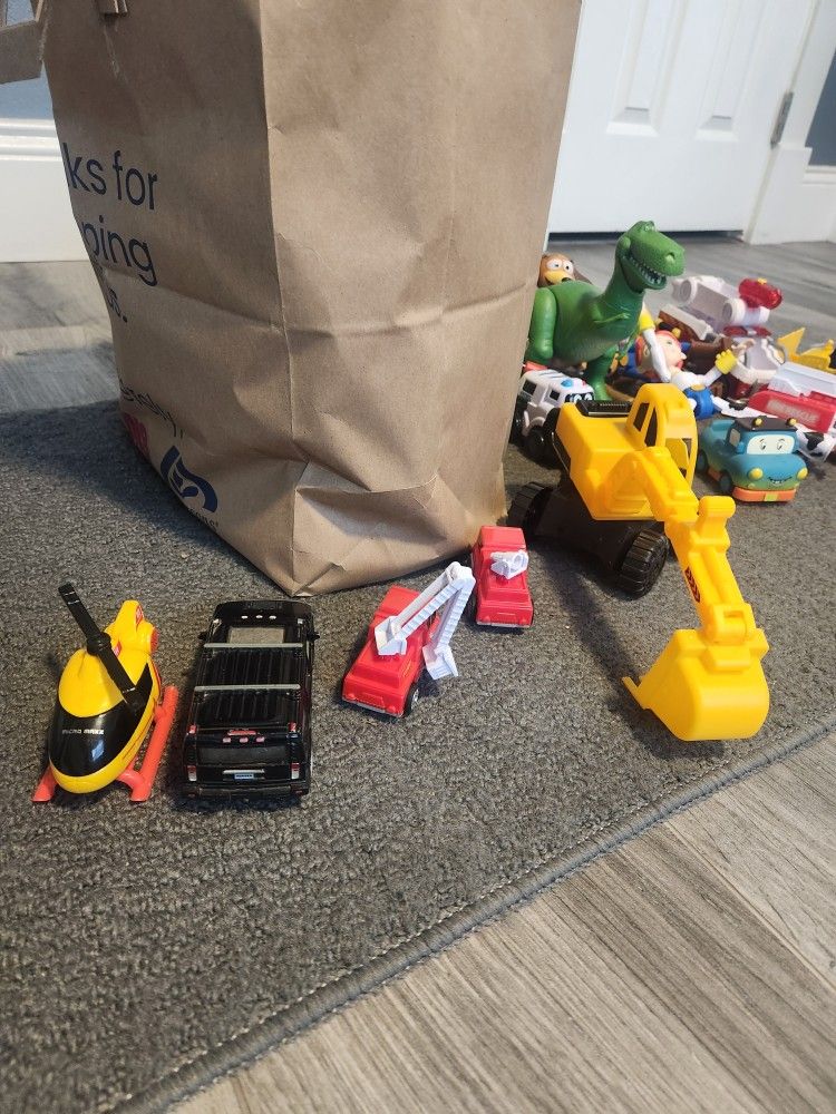 Toy story, trucks, cars, etc