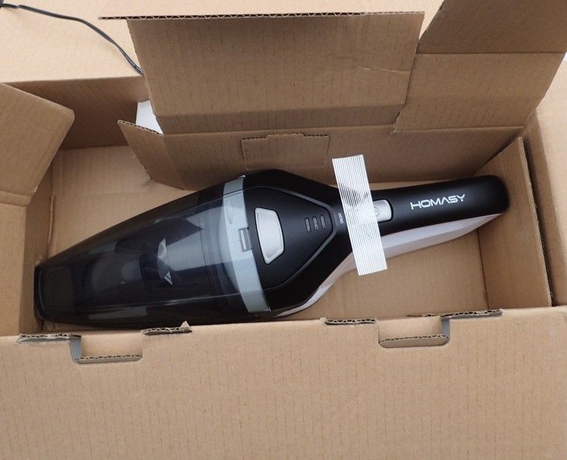 New - box isn't perfect - Homasy Handheld Vacuum Cleaner - Model HM207C, 14.8V, 90W, Li-ion 2200mAh, Dry & Wet use. - Runtime: 30 min - Compact, Battery Operated, Rinsable Filter, Portable - Cord Type: Cordless - Type: Handheld - Charge Time: 5 hrs -